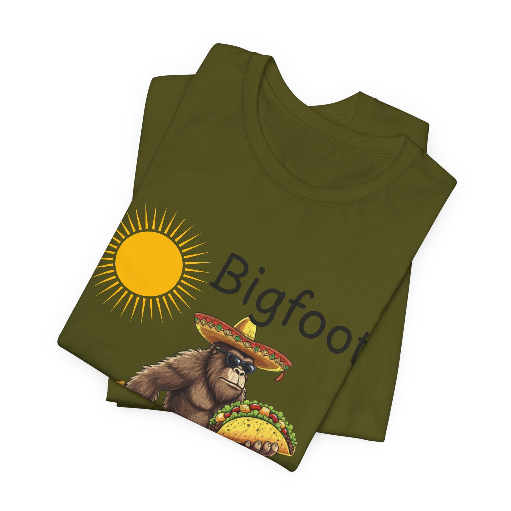 A light-hearted, wearable conversation starter that brings a little myth and a lot of flavor to casual days. This soft jersey tee features a playful Bigfoot illustration wearing a sombrero and carrying tacos beneath a bright sun — a design that reads like a sunny roadside billboard for good times. The breathable Airlume combed and ring-spun cotton keeps you cool while the retail crew neck and side seams give a neat, structured silhouette that layers well. Built with thoughtful details — shoulder tape, ribbed collar, and a tear-away label — this shirt feels comfortable all day, whether you’re grabbing tacos with friends, hitting a local festival, or lounging at home and laughing about the little things. Ethically produced and REACH certified, it’s a casual piece with a responsible story behind it.