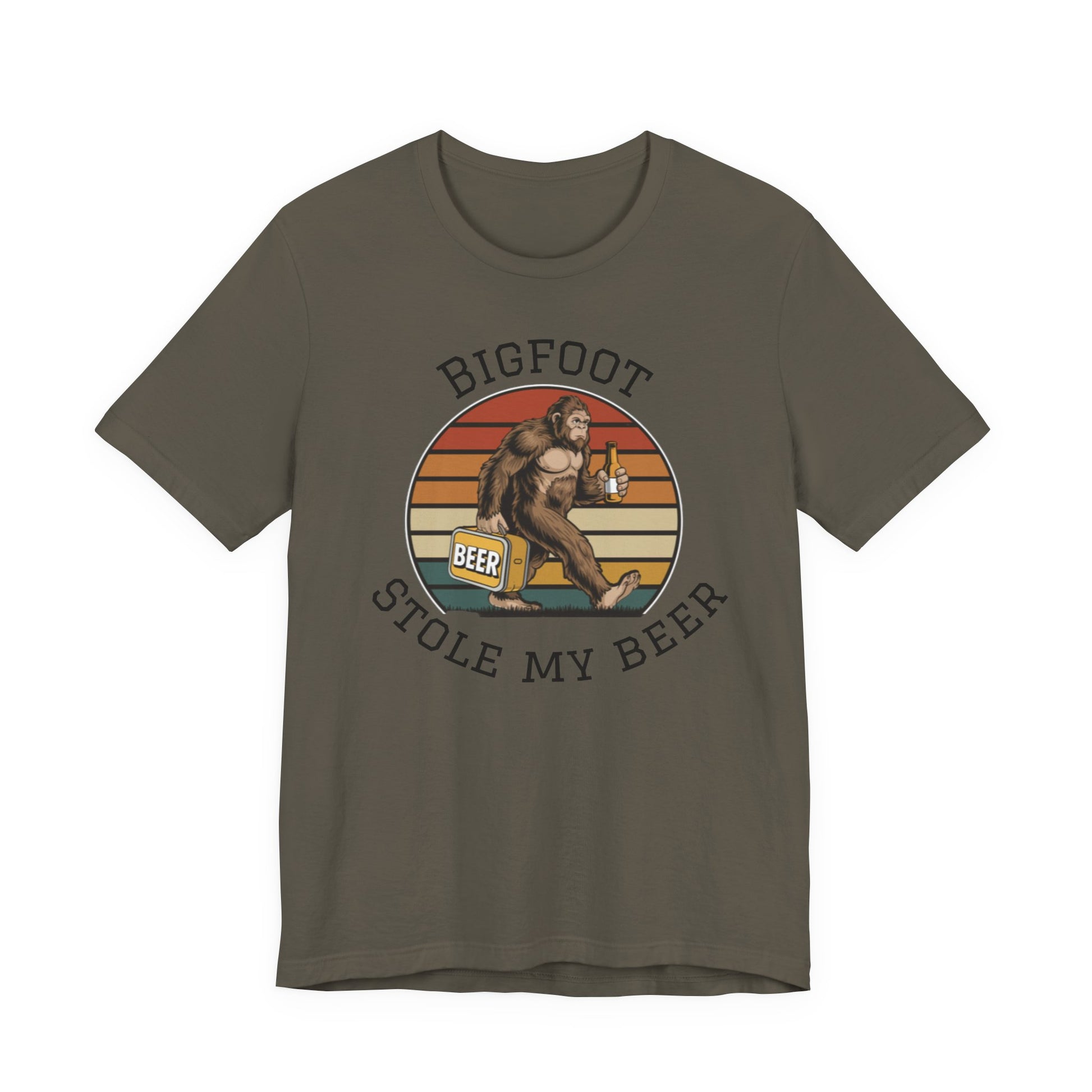 Bigfoot Stole My Beer T-Shirt – Funny Sasquatch Retro Beer Tee