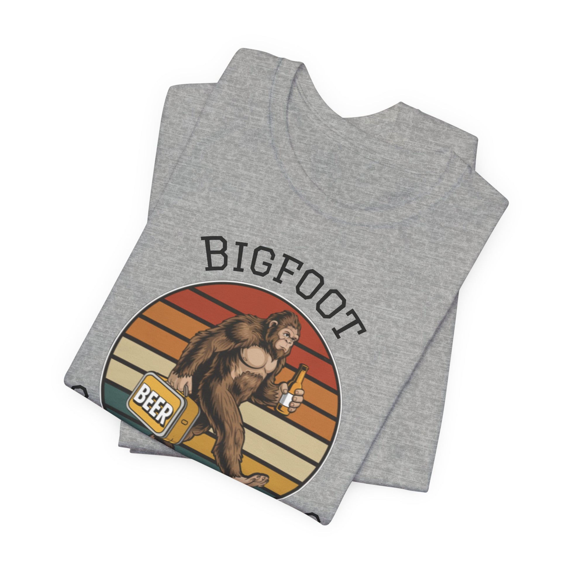 Lightweight, breathable, and built for easy layering — this jersey tee brings a wink of wilderness to everyday wear. The vintage-inspired Bigfoot illustration sits inside a warm, sunset-striped circle with playful lettering that reads “Bigfoot Stole My Beer.” It feels like a late-summer night by the campfire: relaxed, a little mischievous, and ready for laughing with friends. The crew neck and retail fit keep the silhouette neat while the soft Airlume combed cotton ensures all-day comfort. Wear it on trails, at backyard barbecues, or when trading tall tales around the fire; the shirt settles into whatever weekend rhythm you choose and adds a casual, tongue-in-cheek note to the moment.