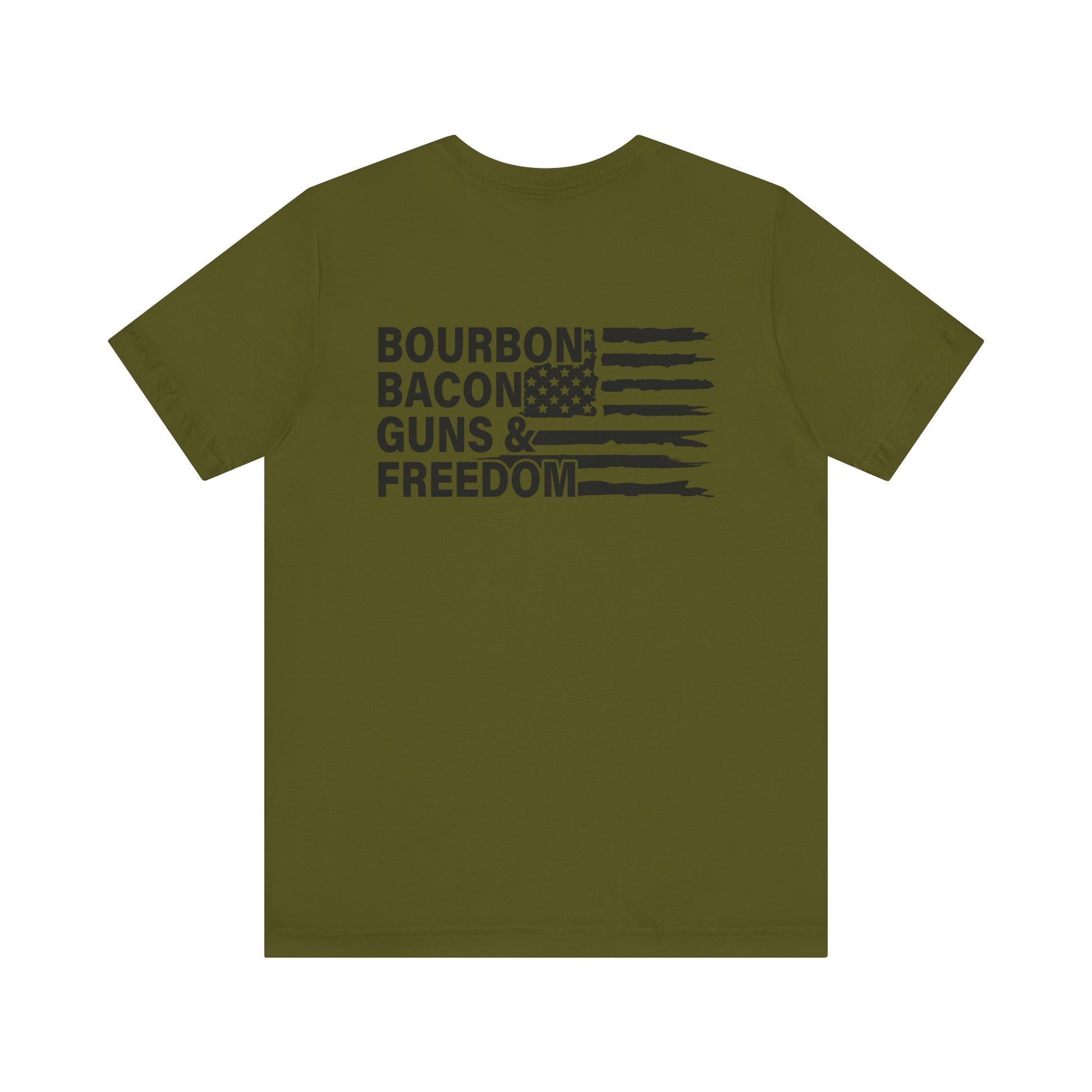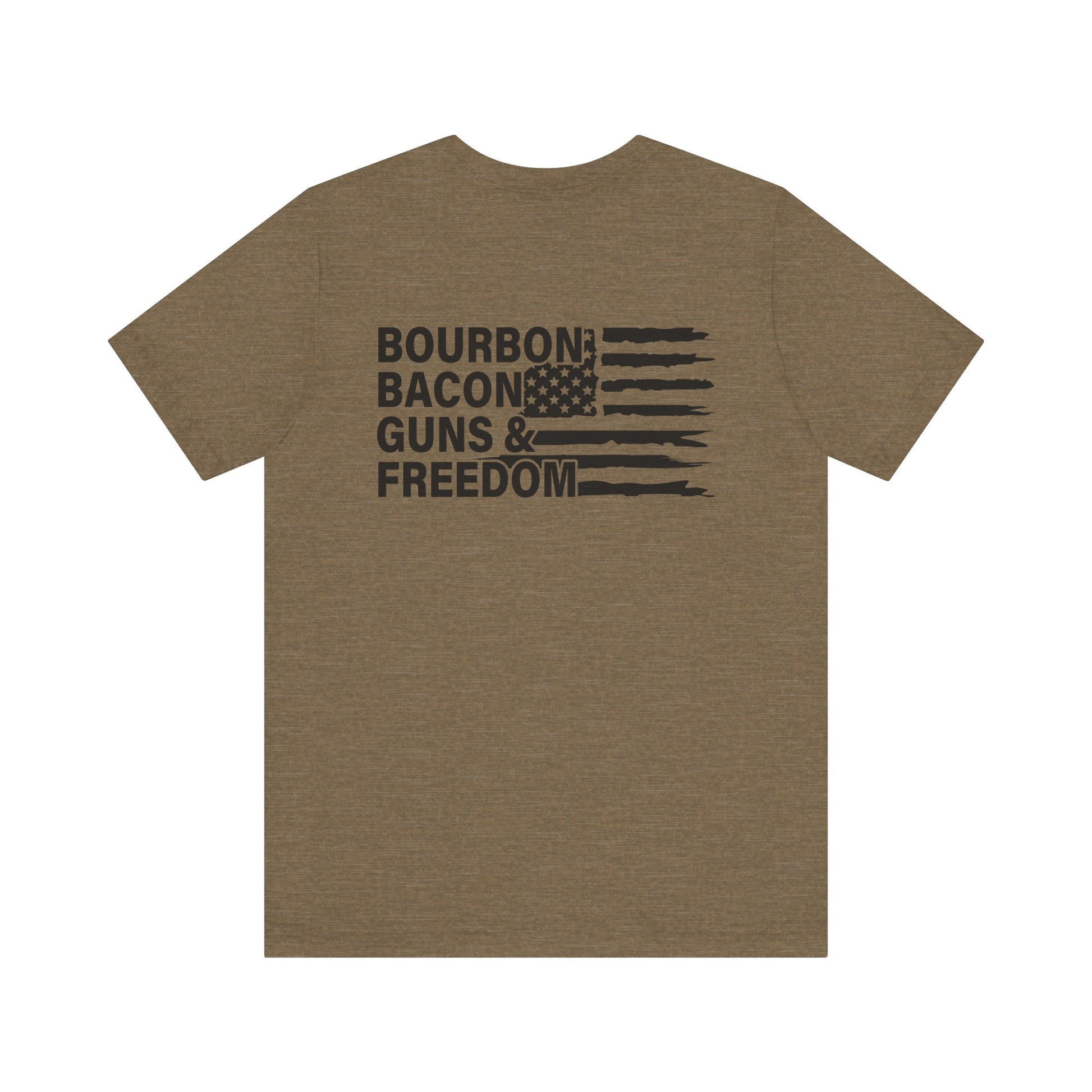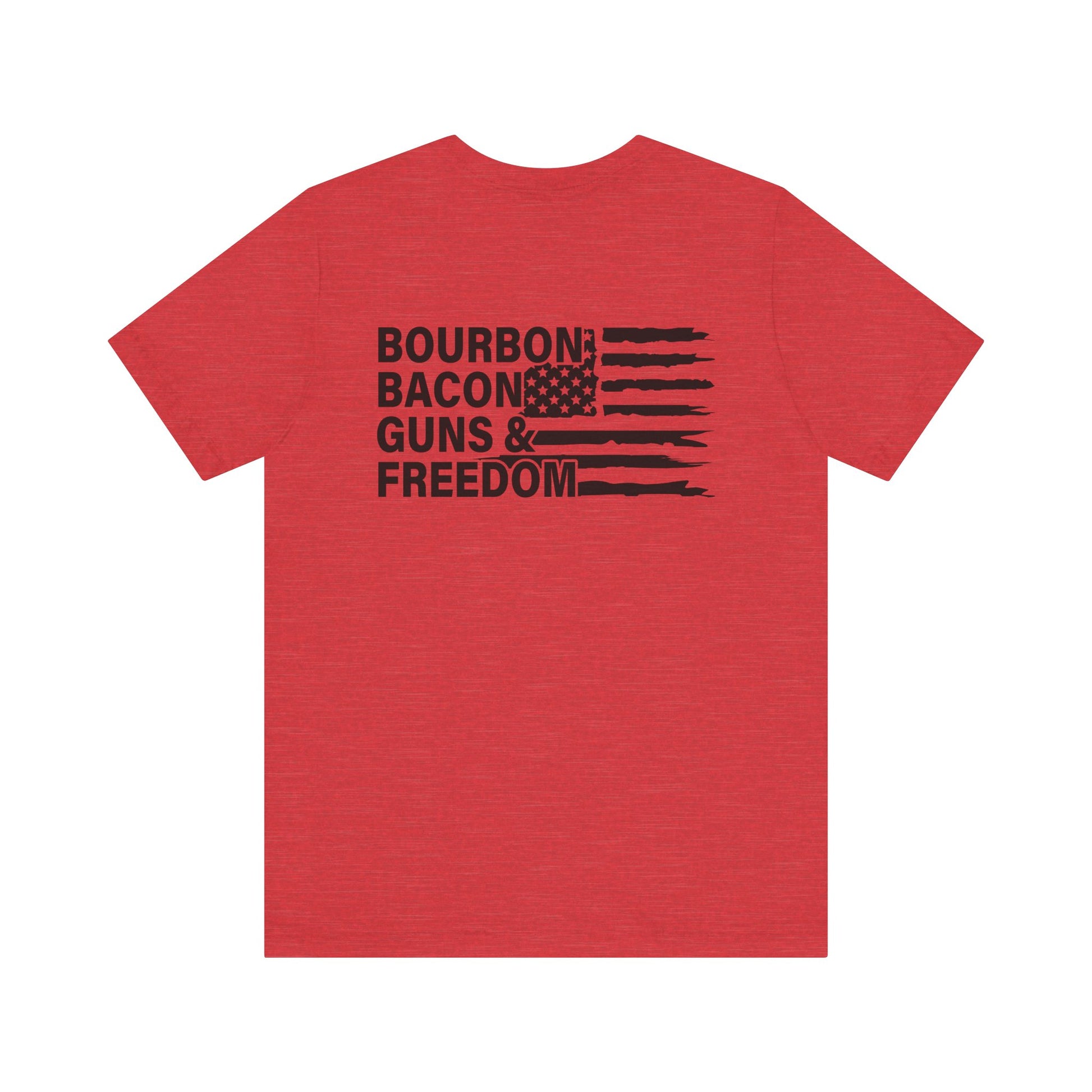 Boubon, Bacon, Guns & Freedom Unisex hort Sleeve Tee