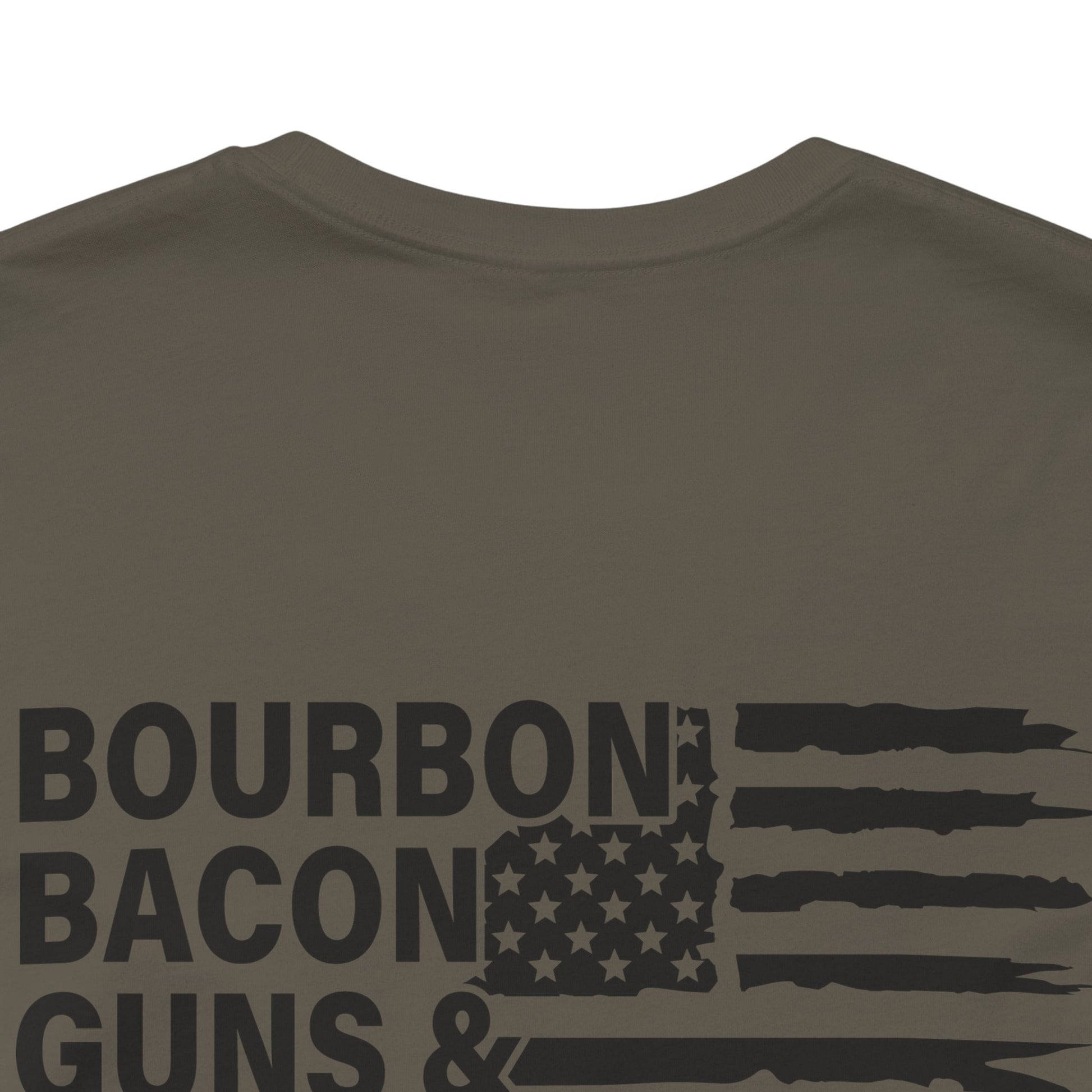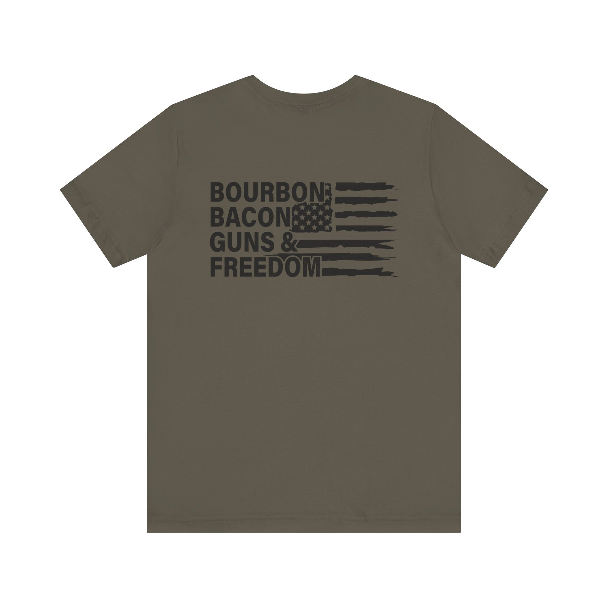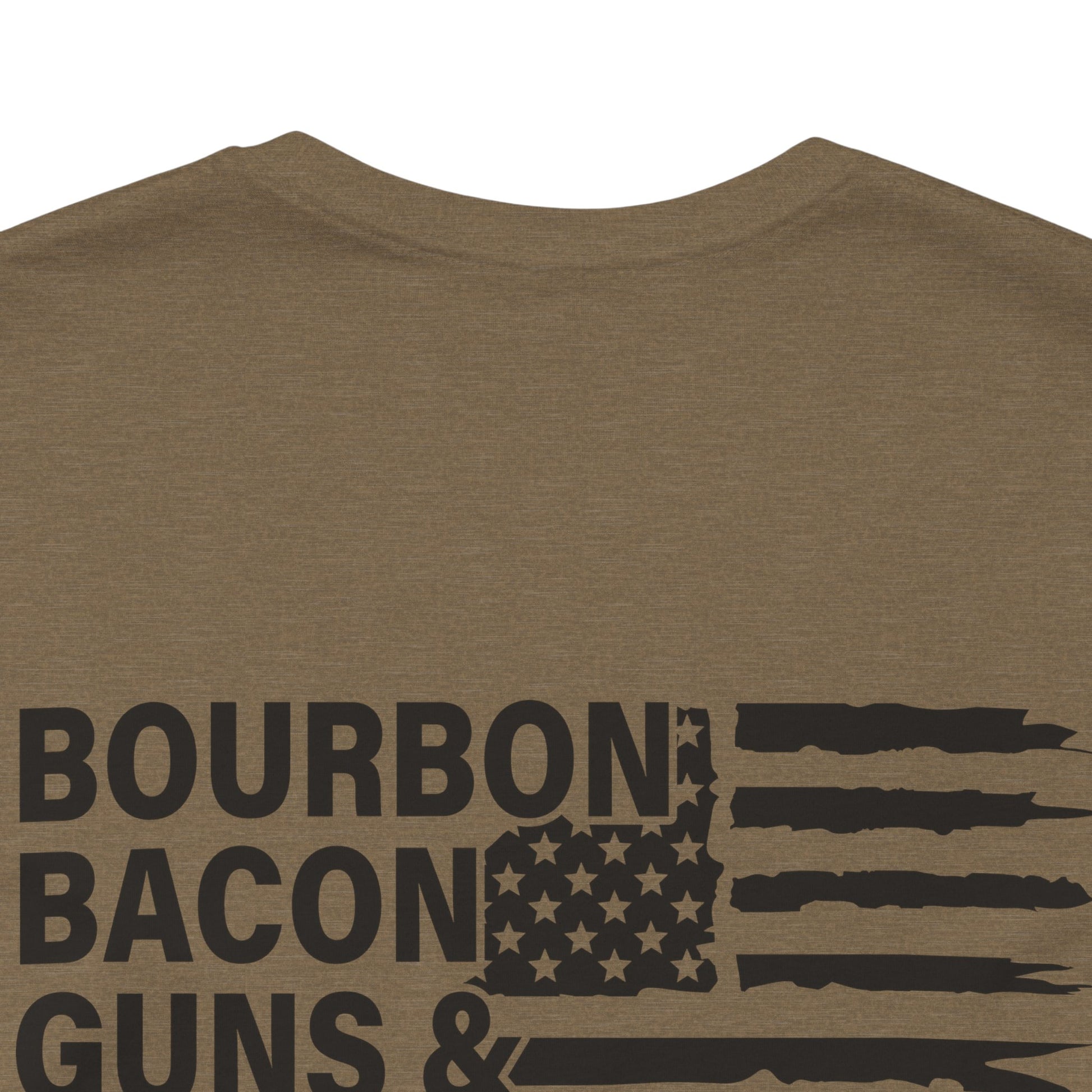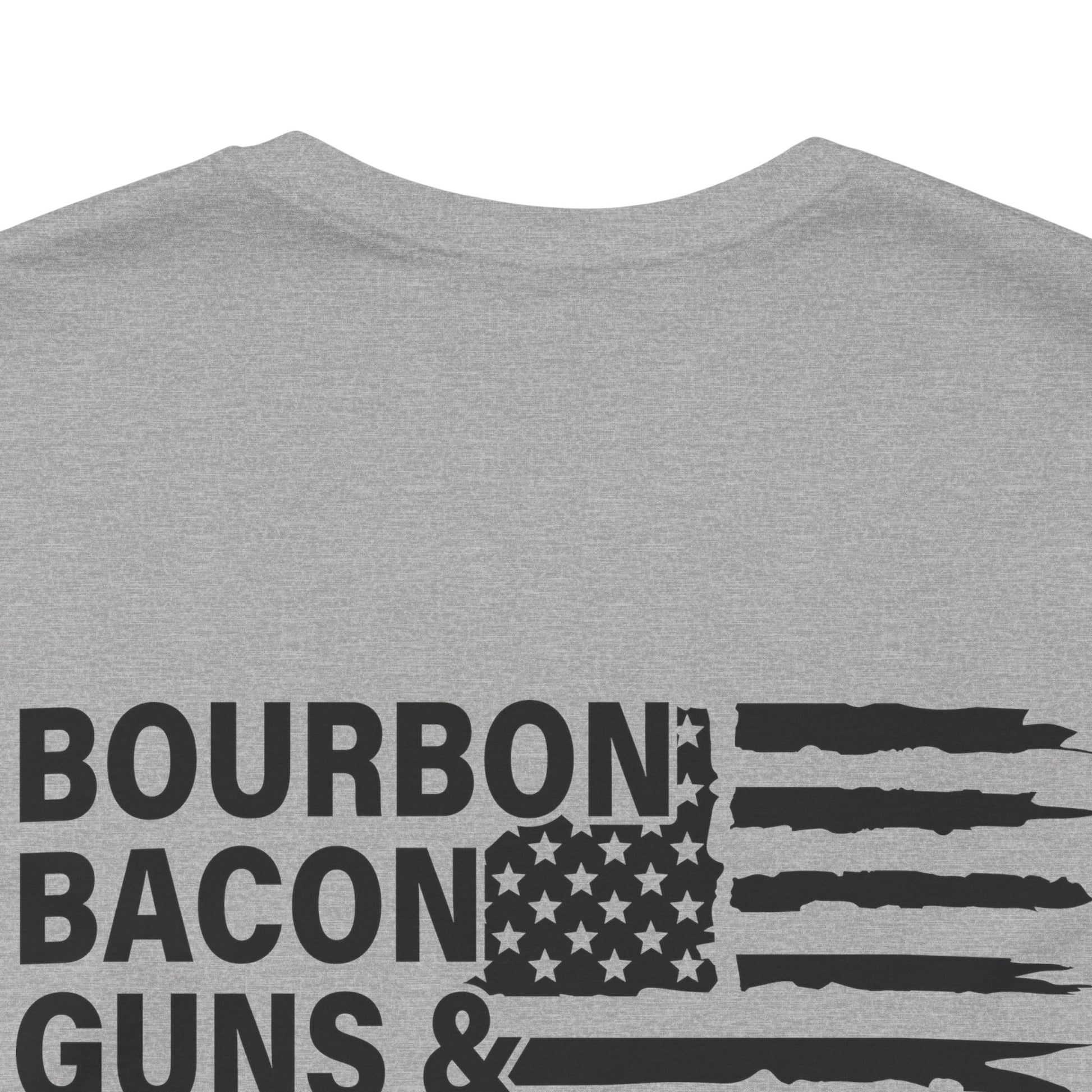 Boubon, Bacon, Guns & Freedom Unisex hort Sleeve Tee