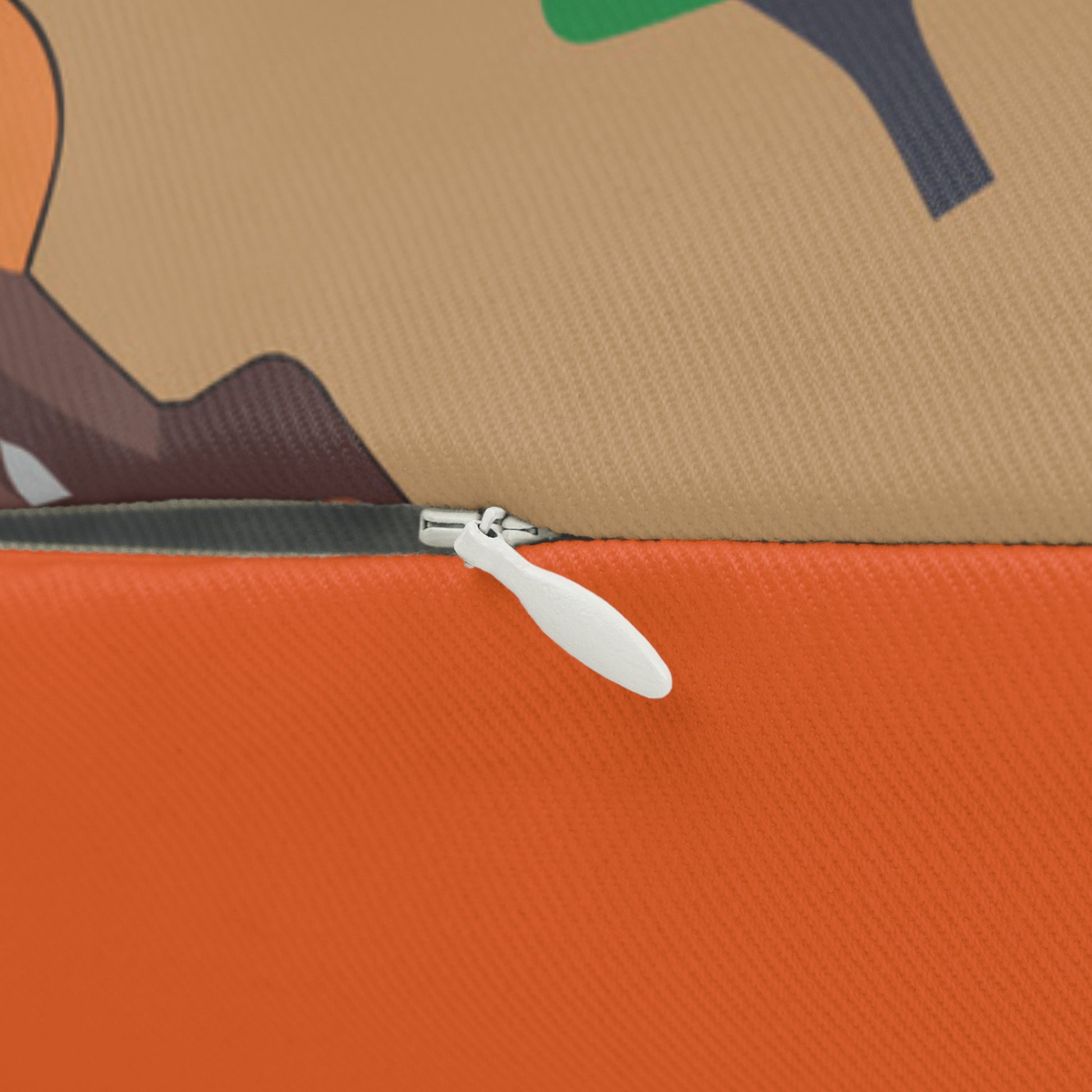 Bring a little campsite charm to your favorite nook with this rectangular lumbar pillow. The front shows a playful camping pattern — tents, campfire, trails and backpacks — rendered in warm, earthy tones that feel like late-afternoon light through pines. The back is a solid burnt-orange that anchors the print and adds a cozy pop. It holds its shape well thanks to durable spun polyester and a removable recycled polyester insert. Tuck it behind your lower back on the couch, layer it on a window seat, or add it to a camper van’s bench for an instant dose of outdoorsy comfort.