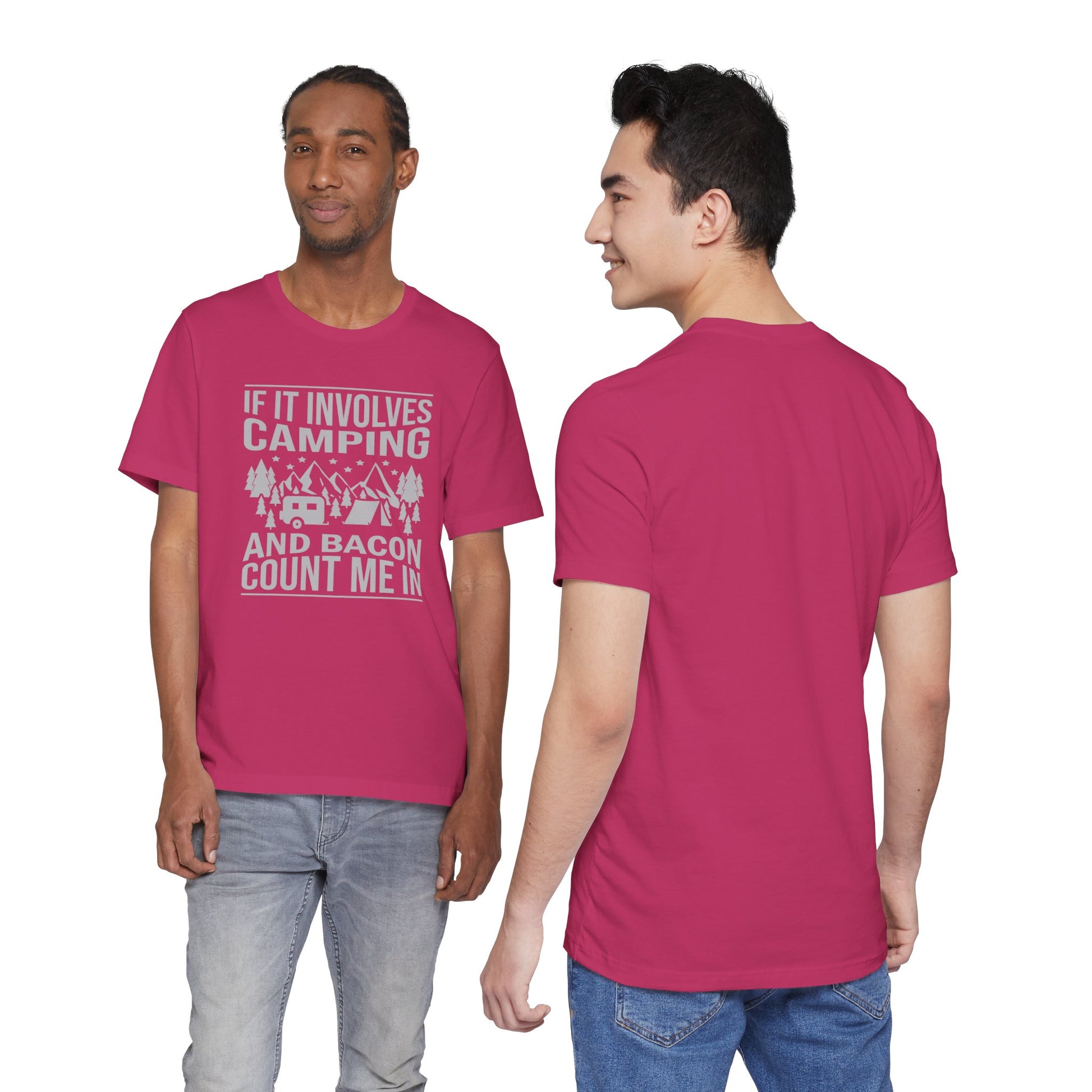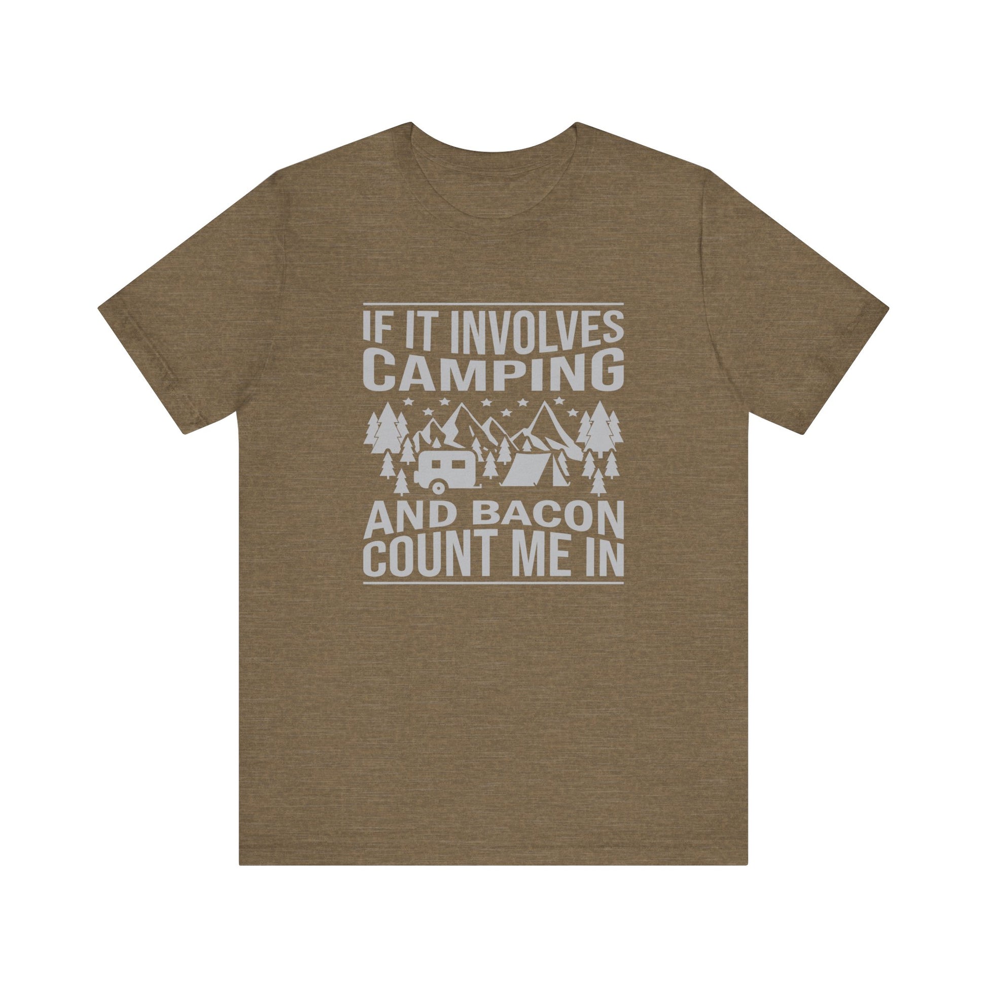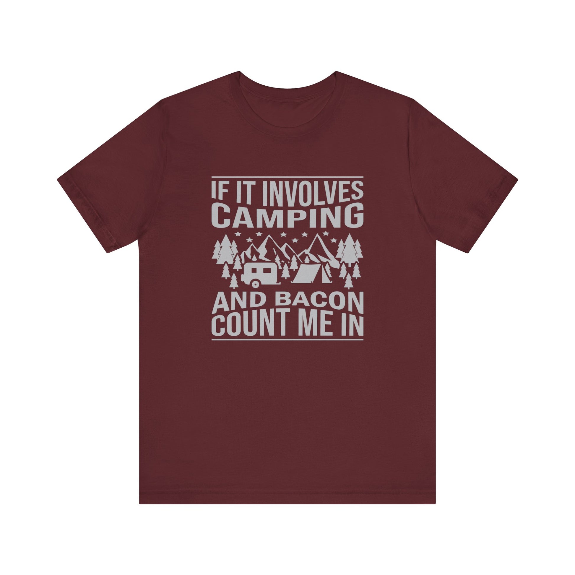 If It Involves Camping & Bacon Count Me In Unisex Short Sleeve Tee