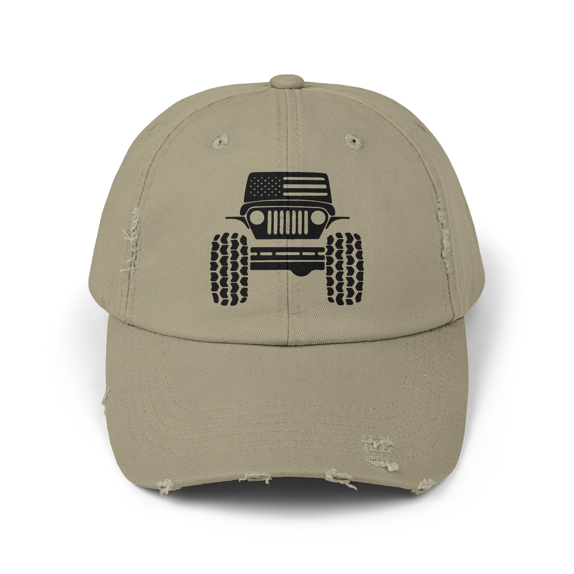 Jeep Front Off-Road Truck Cap — Distressed Canvas Hat for Truck & 4x4 Enthusiasts