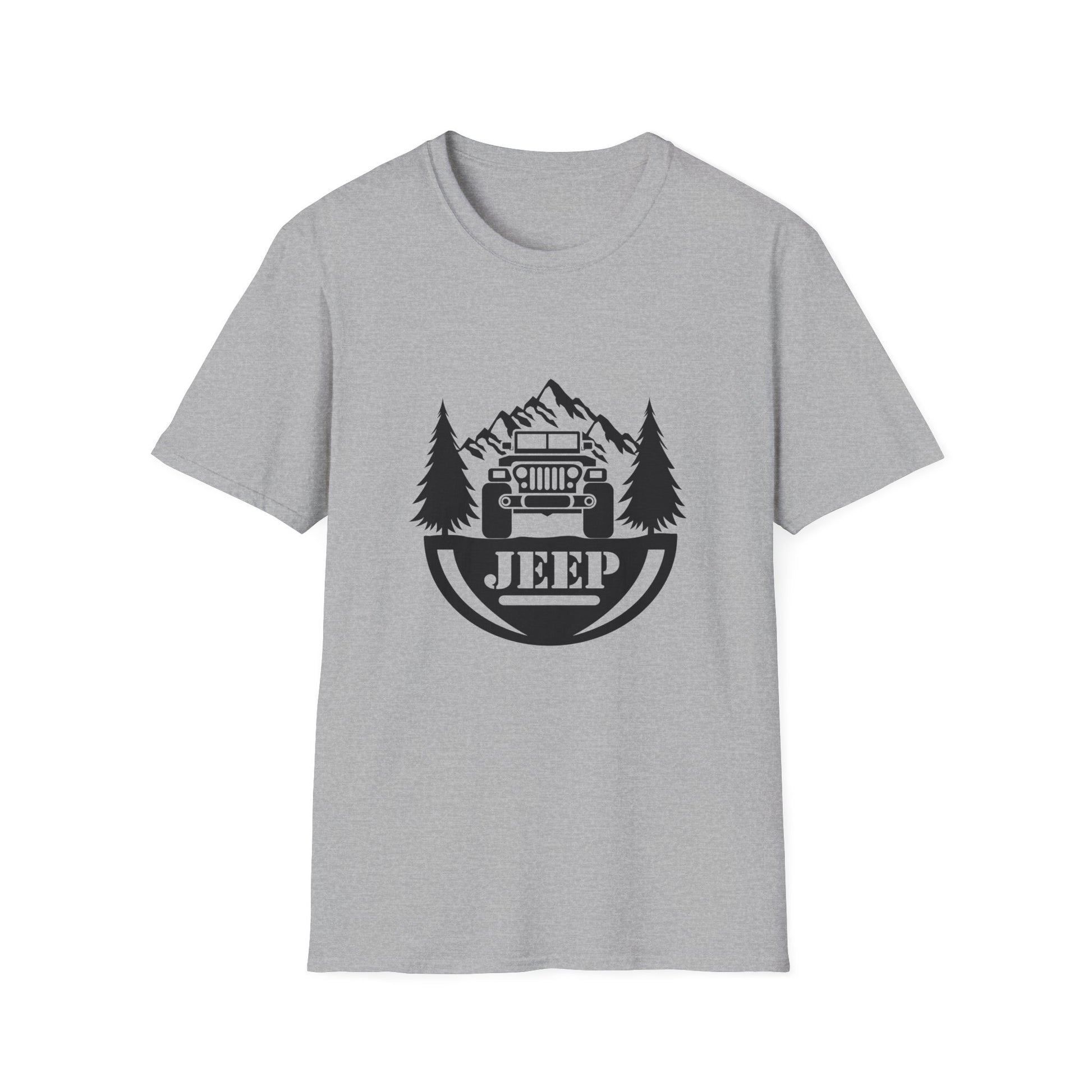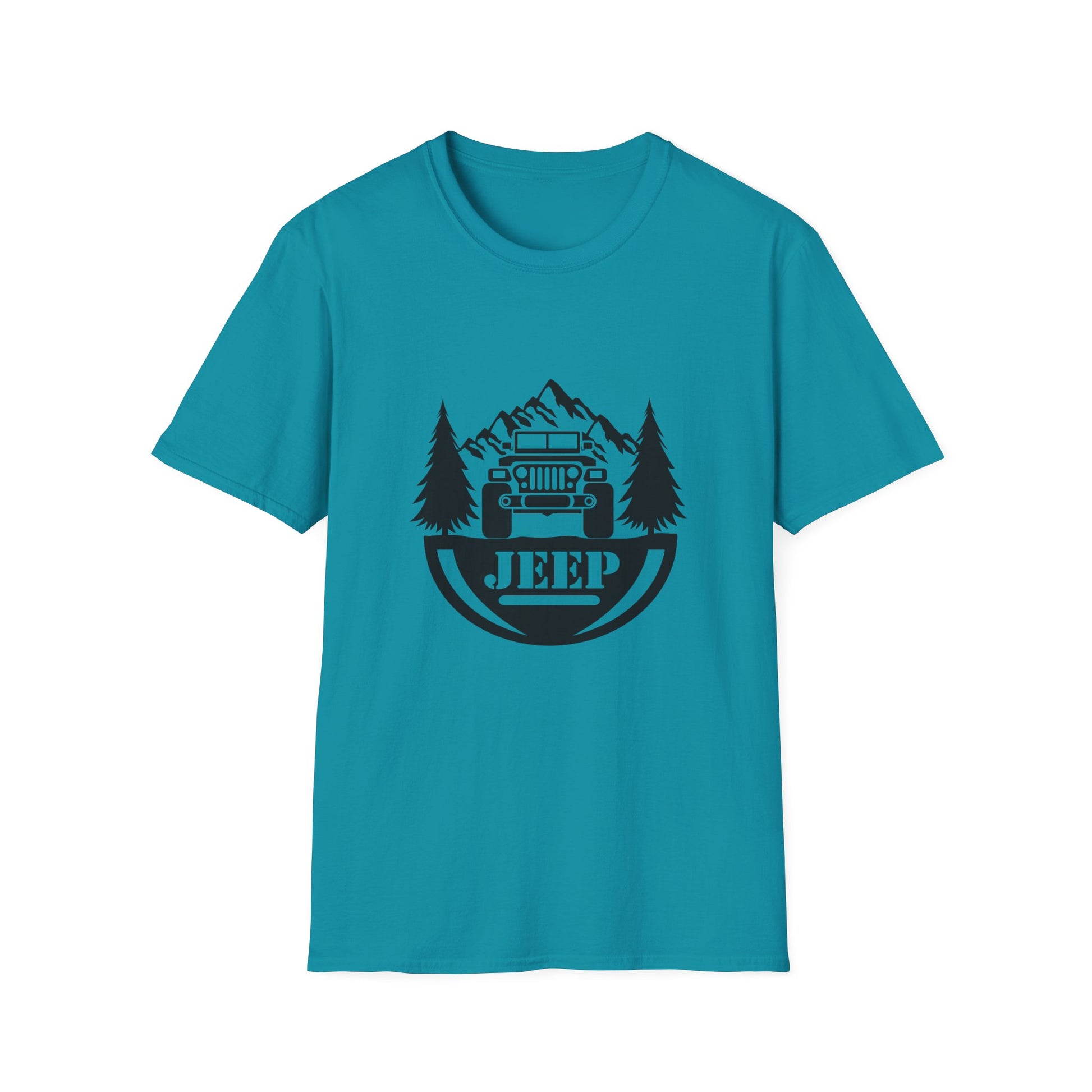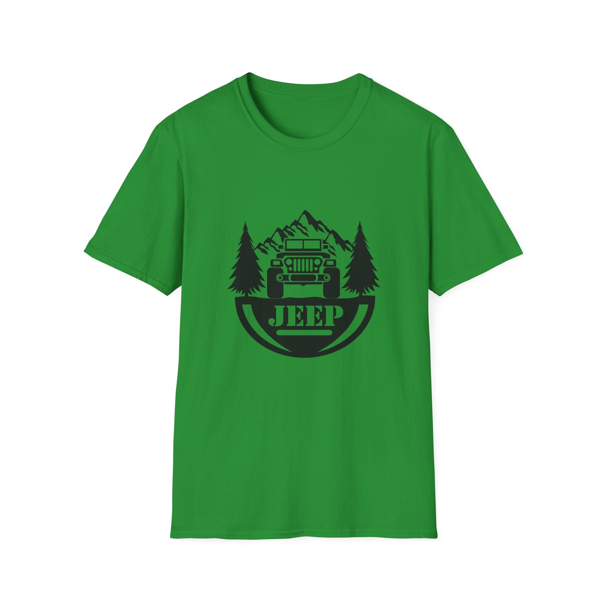 Jeep surrounded by trees & Mtn