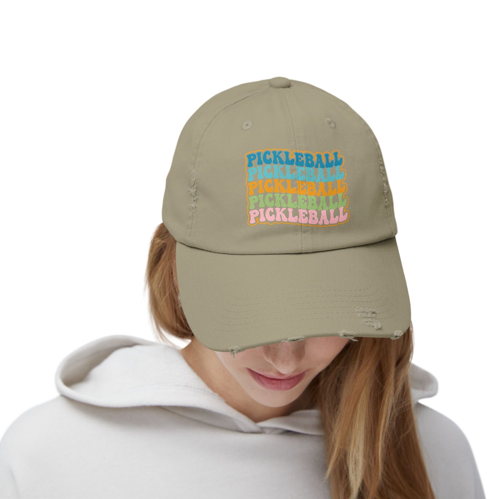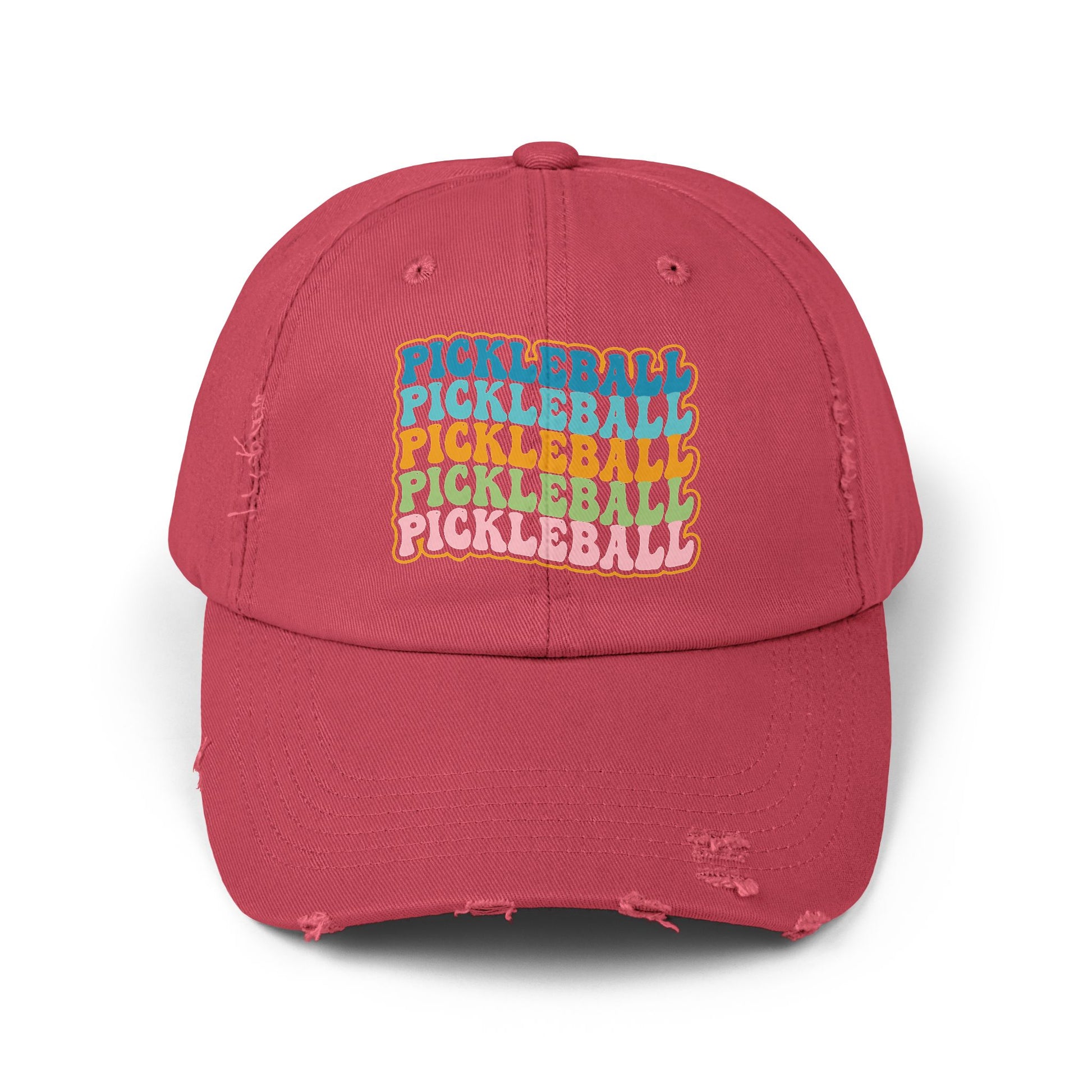 Retro "Pickleball" Distressed Cap — Vintage Rainbow Sport Hat