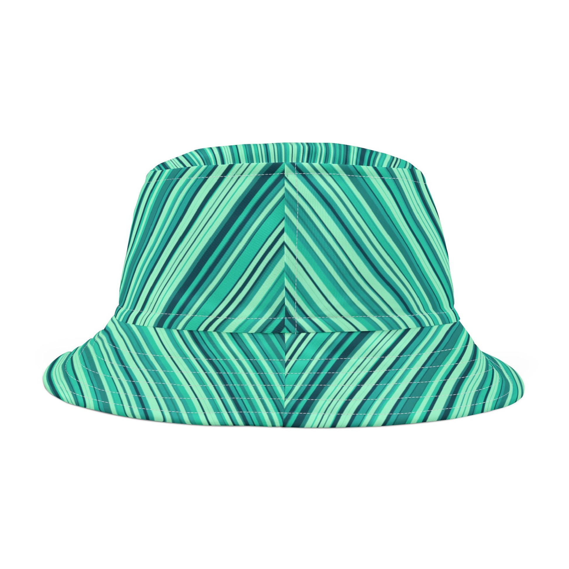 Turquoise Striped Bucket Hat - Retro Beach Sun Hat, Teal Green Waves AOP